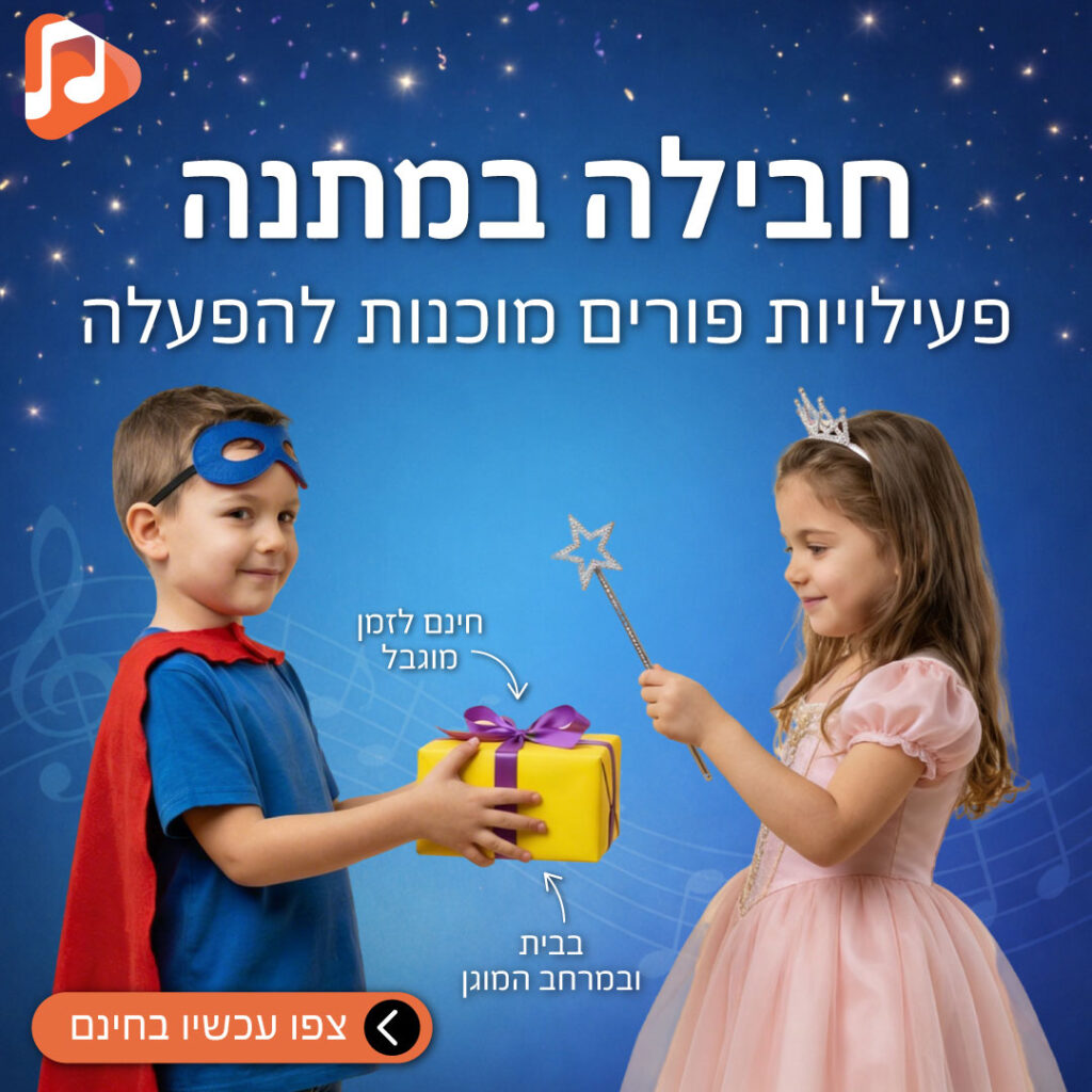 חבילת מתנה לפוריםפעילויות מוזיקליות מוכנות להפעלה 2 פעילויות הכוללת סרטון הסבר ורעיונות ליישום מיידי בגן, בצהרון או בבית הכנו לכם חבילה שמחברת מוזיקה, תנועה ורגש בדרך שהילדים אוהבים, ושאתם יכולים להפעיל כבר היום. מה מחכה לכם בחבילה? • 2 פעילויות מוזיקליות לפורים (מוכנות להפעלה)• סרטון למידה לפורים• ערך חינוכי ורגשי לעבודה עם ילדים• רעיונות קלים […]