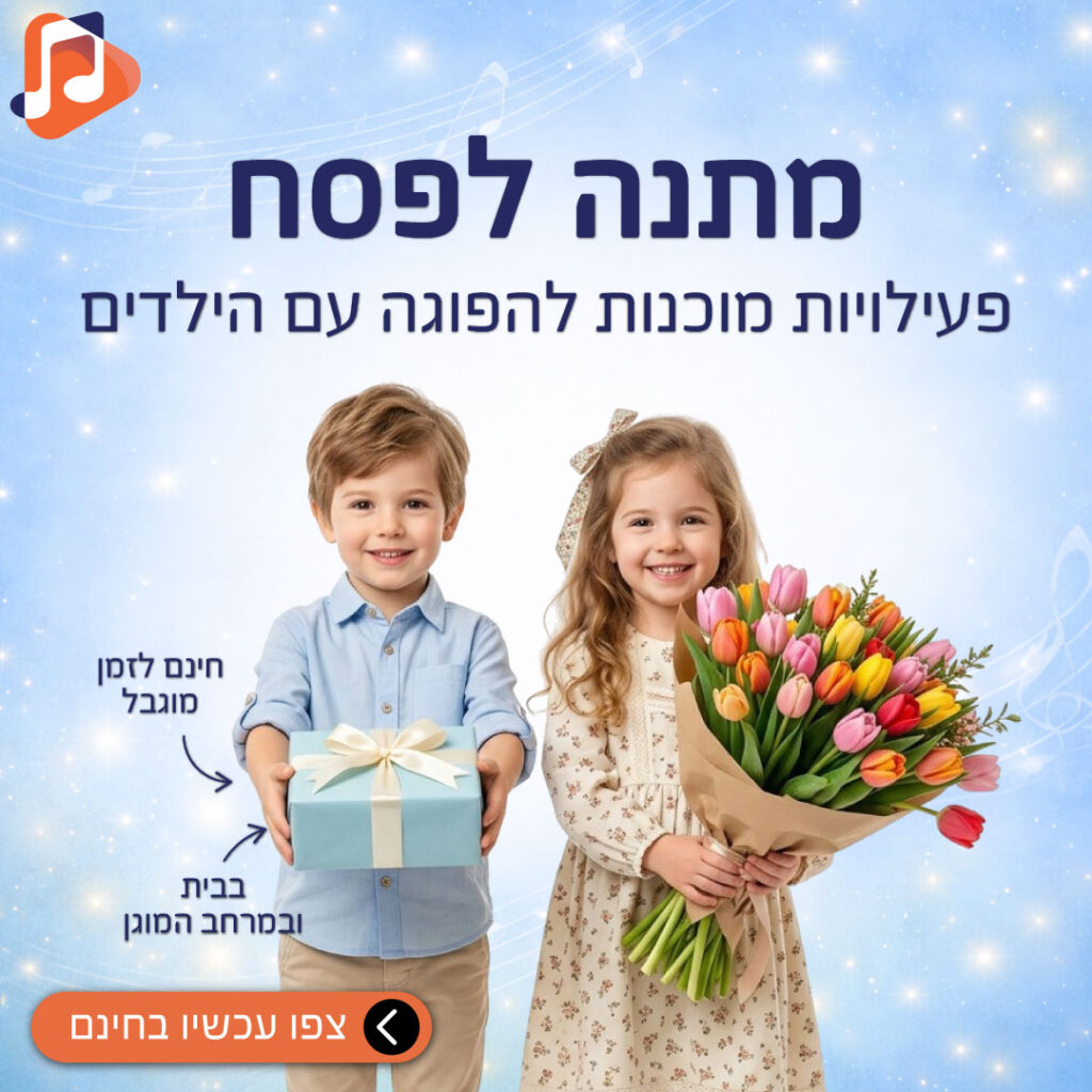 חבילת מתנה לפסח פעילויות מוזיקליות מוכנות להפעלה 3 פעילויות הכוללת סרטון הסבר ורעיונות ליישום מיידי בגן, בצהרון או בבית הכנו לכם חבילה שמחברת מוזיקה, תנועה ורגש בדרך שהילדים אוהבים, ושאתם יכולים להפעיל כבר היום. מה מחכה לכם בחבילה? • 2 פעילויות מוזיקליות לפסח (מוכנות להפעלה) • פעילות יצירה עם ליאת לקישוט שולחן החג • סרטון […]